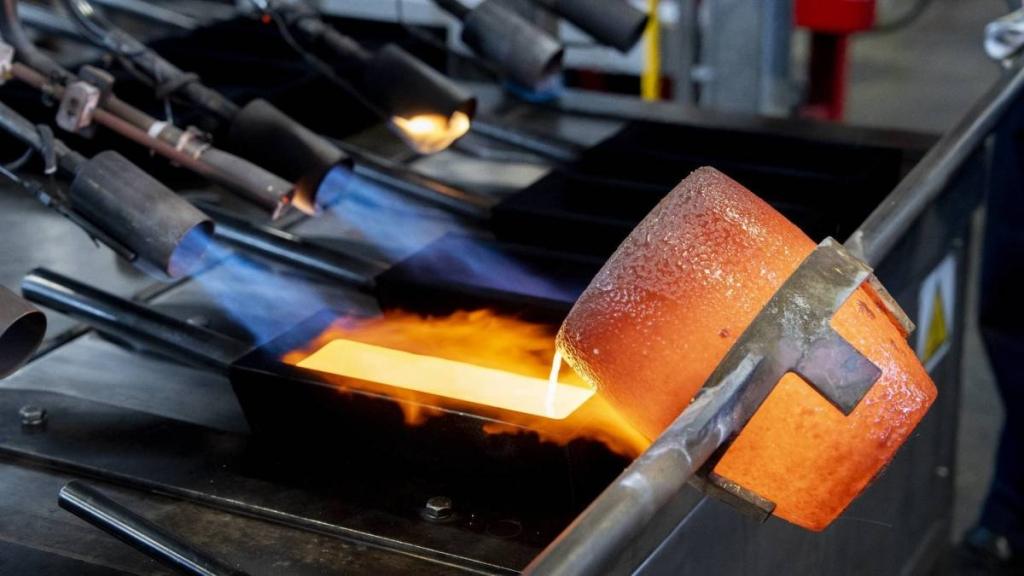 Gold being poured into a mould. Francesca Volpi/Getty Images
